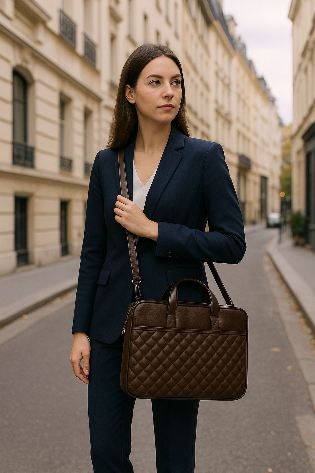 Premium Kapitone Desen 15" & 16"inç Laptop Notebook Tabletlere Uyumlu Evrak Dosya Bilgisayar Çantası Kahverengi