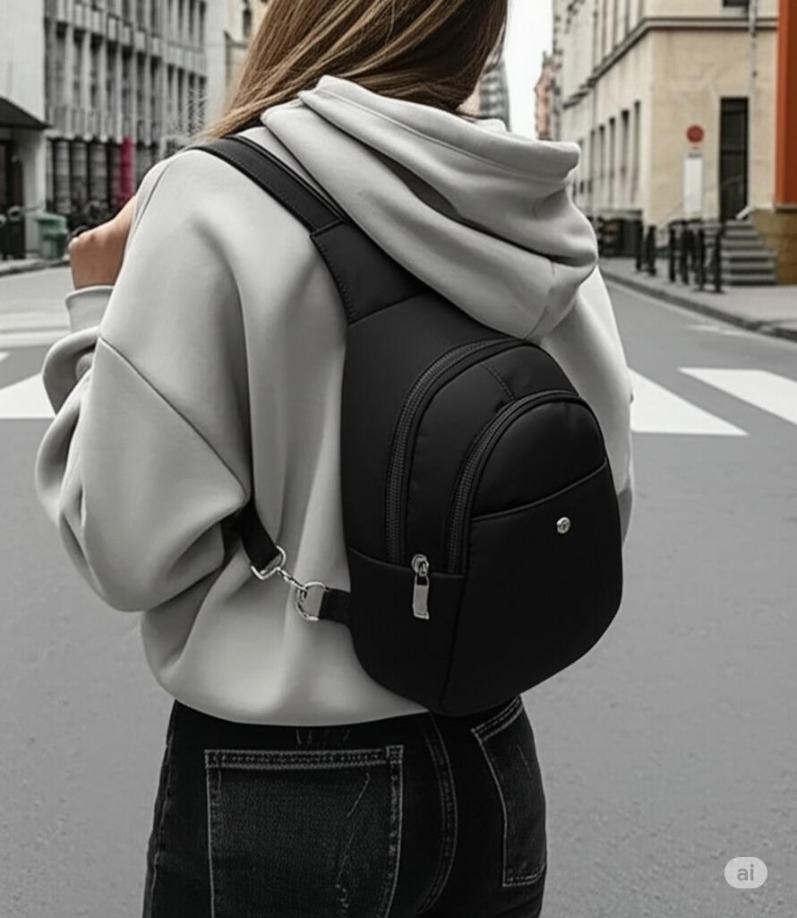 Siyah Kadın Sırt Ve Omuz Çantası Çok Amaçlı Çanta