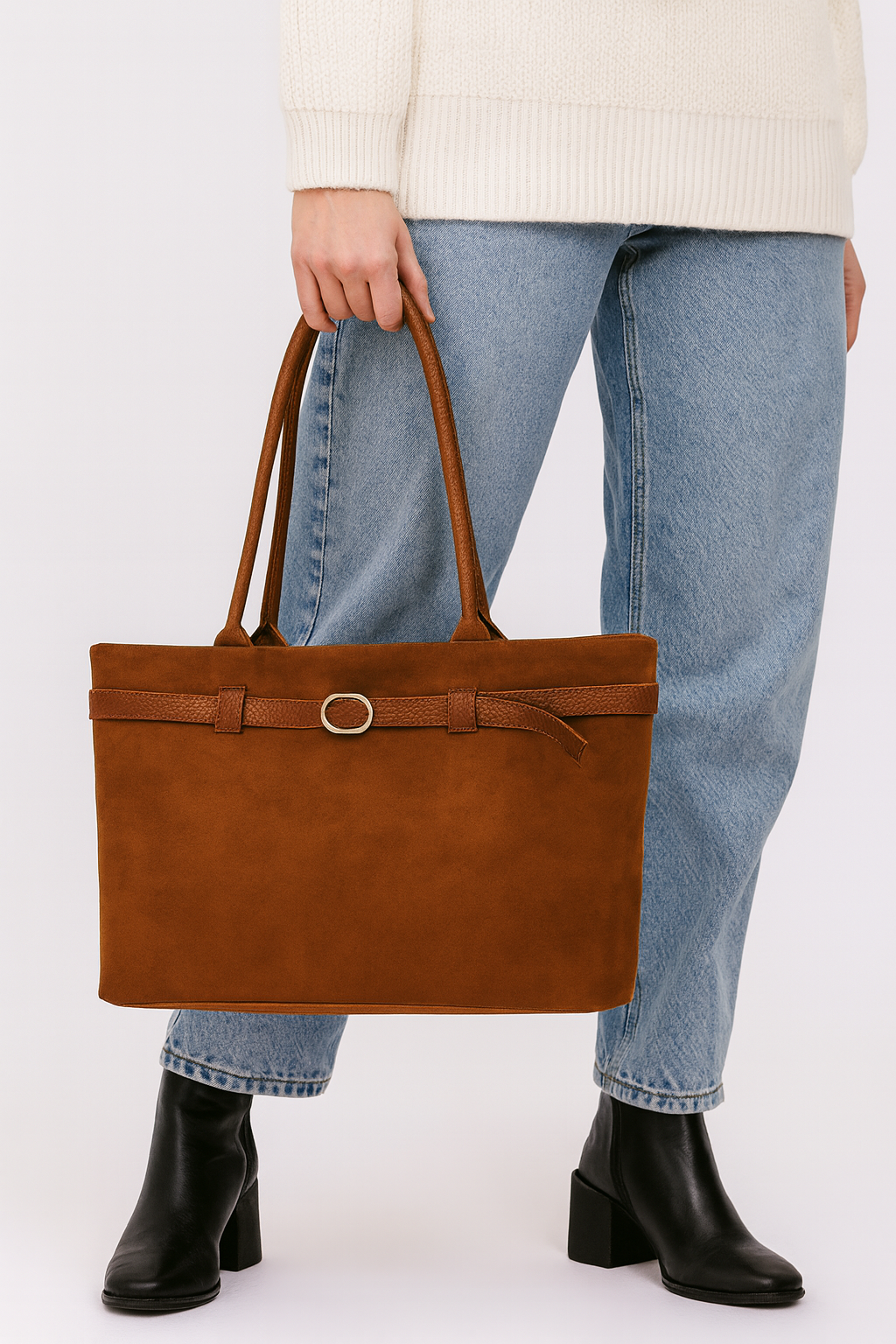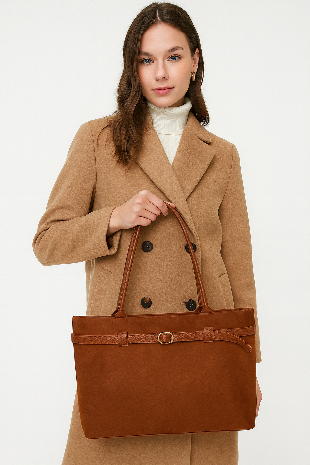 Taba Süet Kemer Detaylı Çapraz Askılı El Ve Omuz Çanta