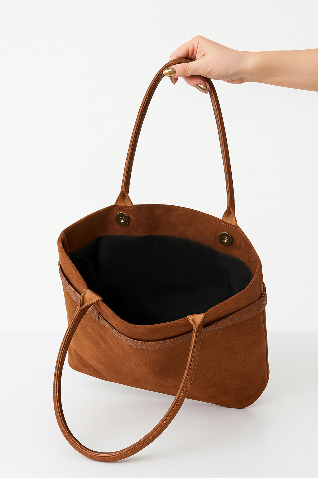 Zamansız tasarımıyla dikkat çeken bu kahverengi süet omuz çantası, sade şıklığın en zarif ifadesidir. Yumuşak dokulu süet yüzeyi ve ince işçiliğiyle öne çıkan model, her detayında kusursuz bir estetik anlayışını yansıtır.