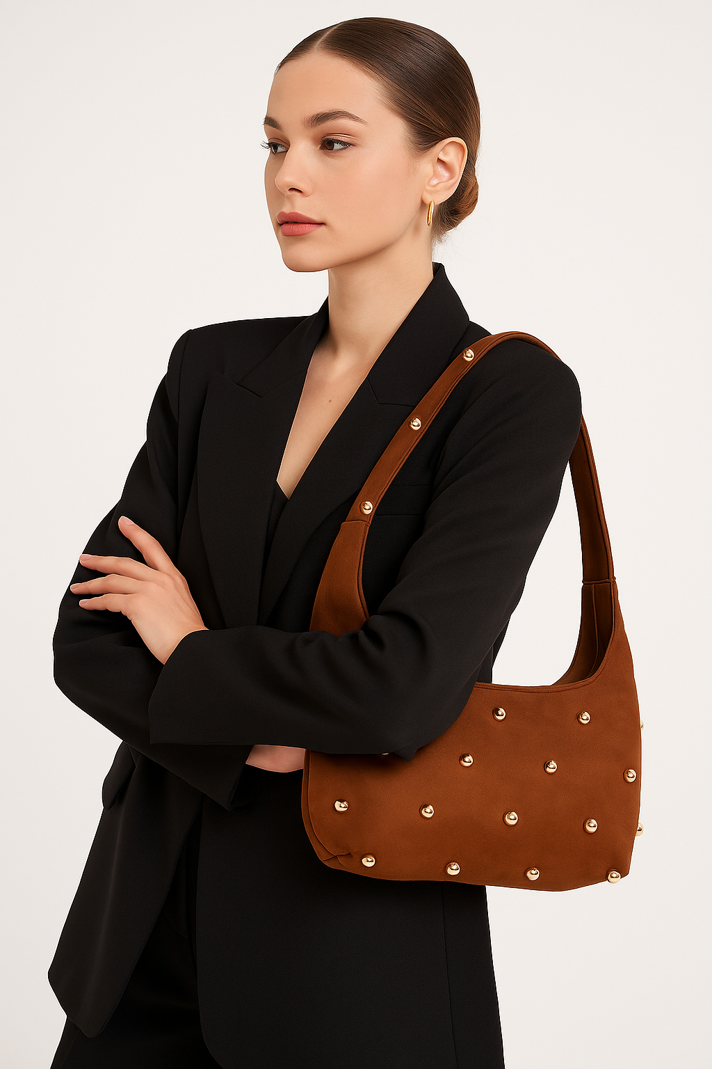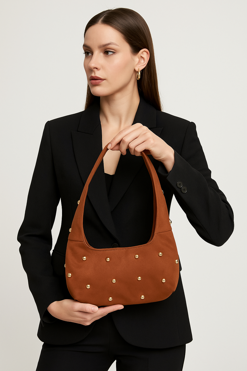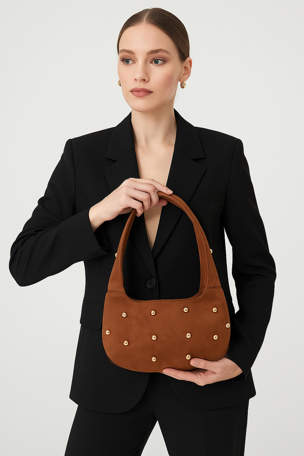 Taba Süet Trok Taşlı Kadın Oval Orta Boy El Ve Omuz Çanta